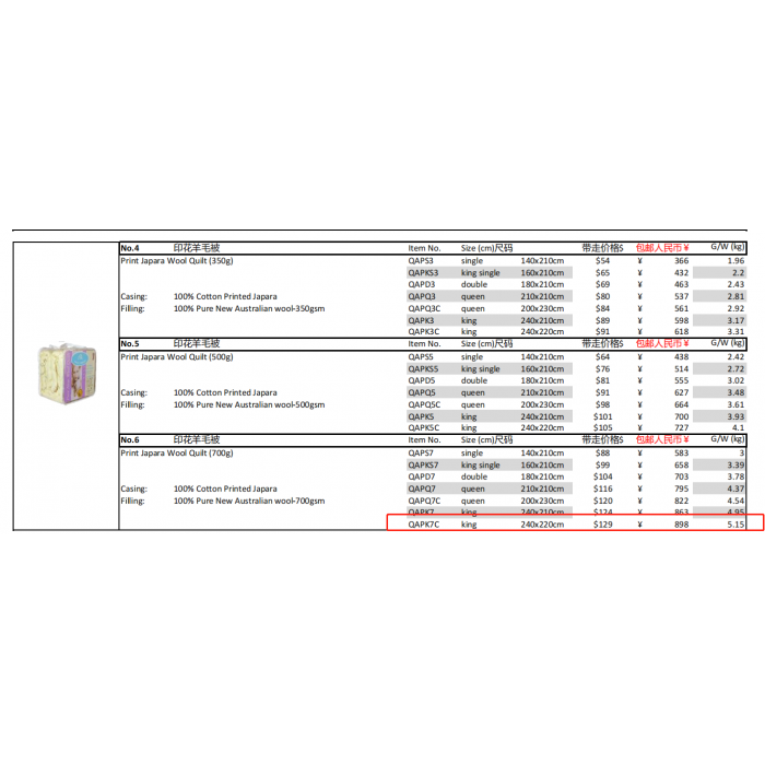 皇冠印花綿羊被700g King size 180*210cm