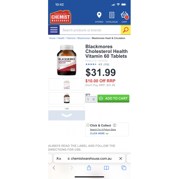 Blackmores Cholesterol Health Vitamin平衡片 60粒