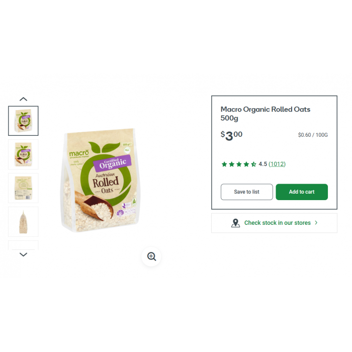DM Macro Organic Rolled Oats 麦片500g