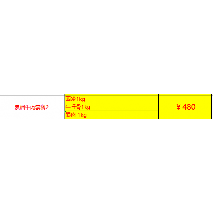 澳洲牛肉套餐2(西冷1kg+牛仔骨1kg+眼肉1kg)